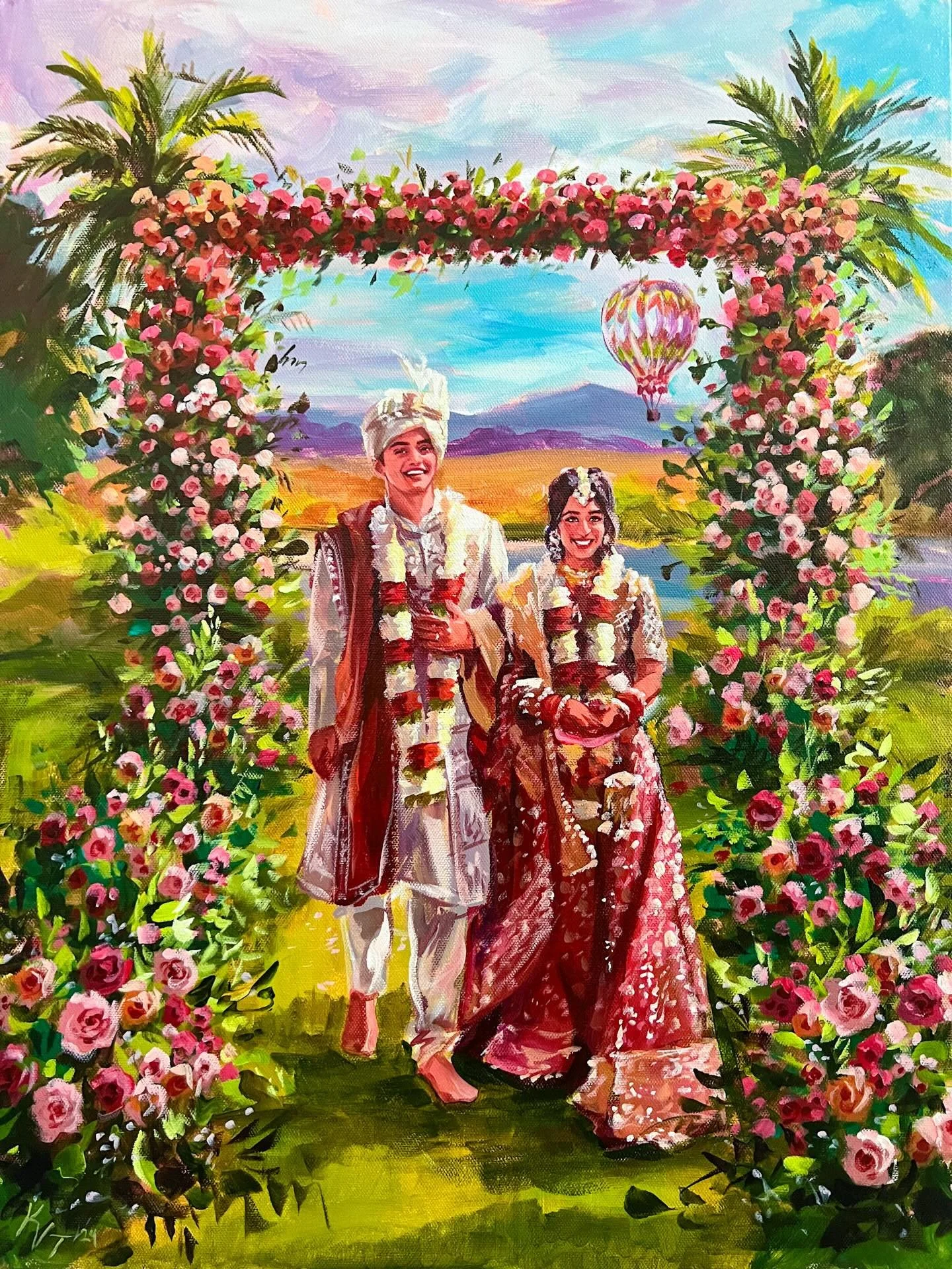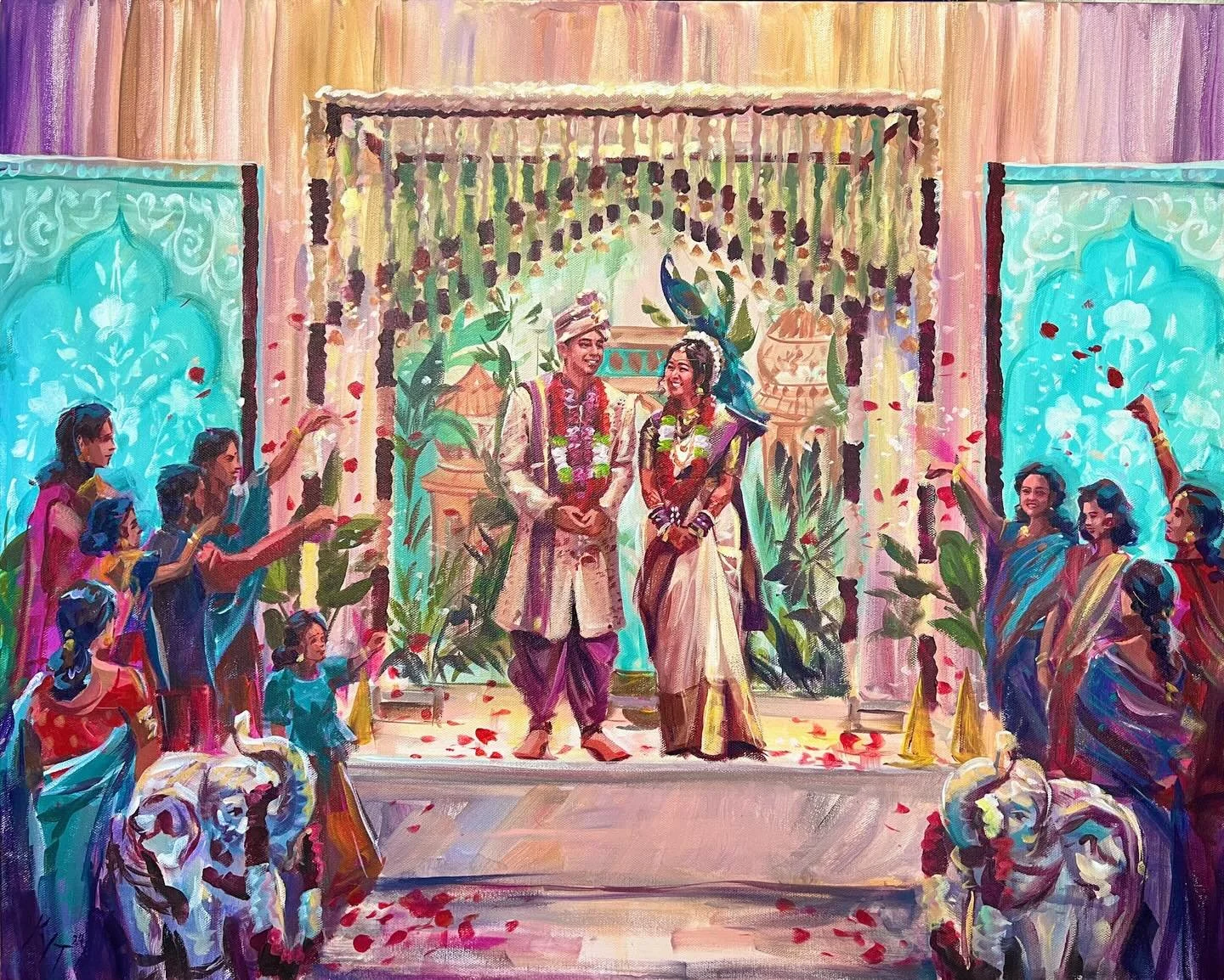 Hired Kim for our wedding painting and she was amazing! Very respectful of the cultural traditions and captured our wedding beautifully! Loved the colors and detail in the painting. She was also a very clear and straightforward communicator, which made it very easy to work with her. Highly recommend for a unique touch for your wedding!