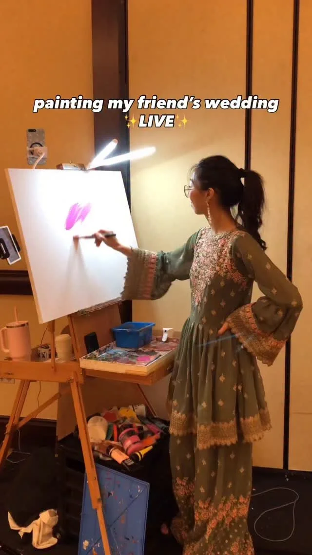 I was searching EVERYWHERE for a local live painter for our wedding. I came across Kim-Vi TikTok account and absolutely fell in love with her artwork. And thankfully I was able to hire her for our wedding day!